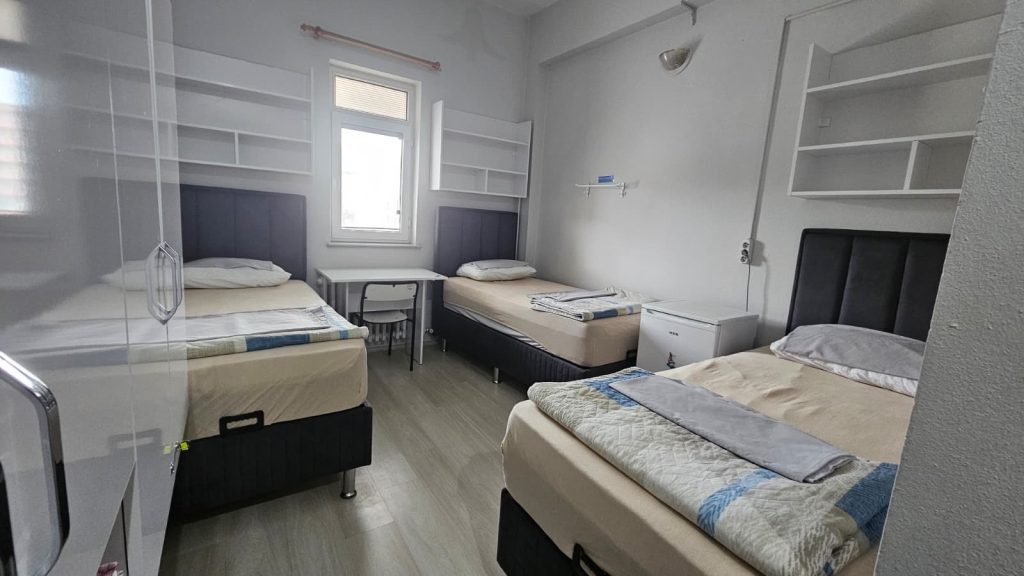 - 3 kişilik 33 oda (99 kapasite) 3 er kişilik 5 adet banyosuz oda